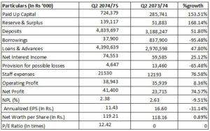 As per the report published, the finance has increased in net profit by 74.57%. Net profit rose to 4.14crore from 2.37crore in the corresponding quarter last FY 2073/74.