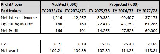 The company is able to sustain at profit from the beginning of operation. The company has expected increase net profit to Rs.6.9 crore from 1.66 lakh over the 3 years. likewise, operating profit, net interest income, etc are to be improved over 3 year.