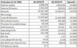 Its paid up capital is 2.01 arba. Reserve reached to 1.01 arba. Reserve increased by 819.25%. It meet capital requirement of 2.5 arba, bank has further to hike its capital by around 13% after the 10 right share adjustment.
