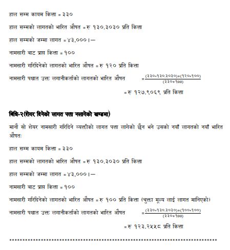 To determine Capital gain tax on securities transaction, Weighted Average Cost of Capital calculation system is implemented from today; 01 Shrawan 2076. As many investor found confused to calculate average cost. So, CDSC published notice regarding method of calculation.