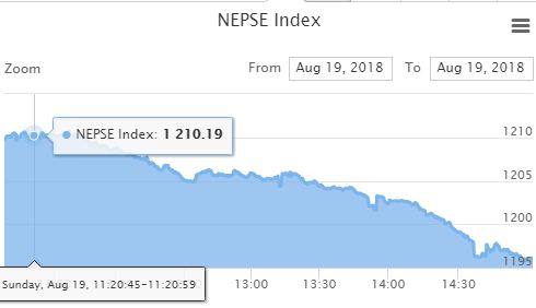 Nepse index fall by 14.03 points & closed at 1196.29 points on the first trading days of week. Total turnover also decrease to Rs.32.52 crore from the trading of 160 scripts. From the starting of trading market continuously fall down to closed at 1196.29 points. All sub index close with red. Non life insurance sub-index loose by 103.26 points today. These falls in index is due to profit booking from short term traders.
