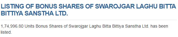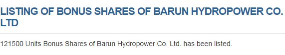 Nepal stock exchange, NEPSE listed bonus share of 8 companies. All together total 1 crore 3 lakh 42 thousand 421 units of share are listed in nepse. These Bonus shares can be trade after one week.
