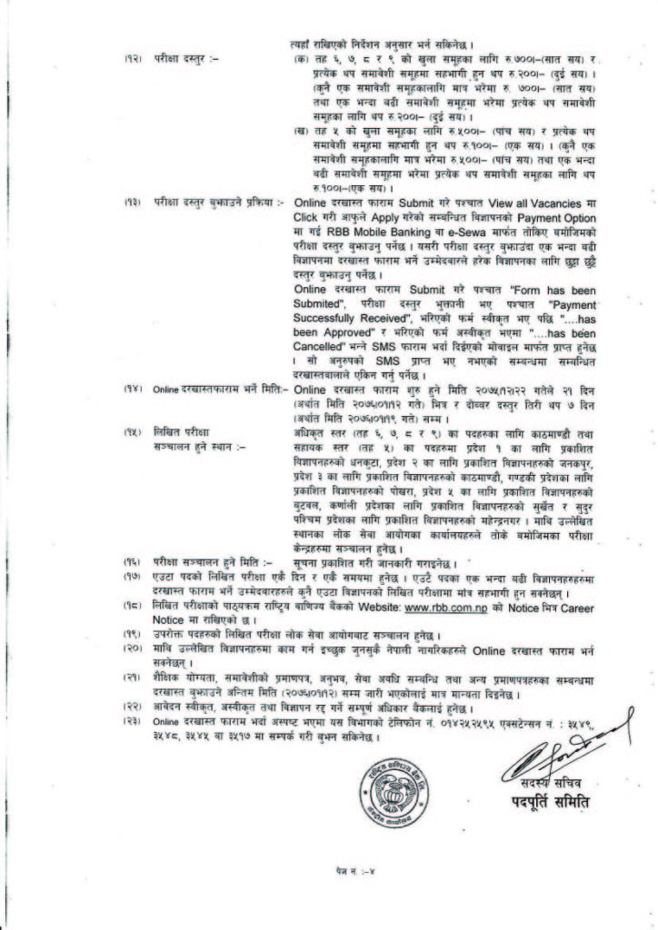 Apply through online means. Visit http://rbb.com.np/vacancynotice.php for details of vacancy announcement.